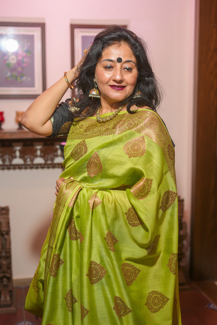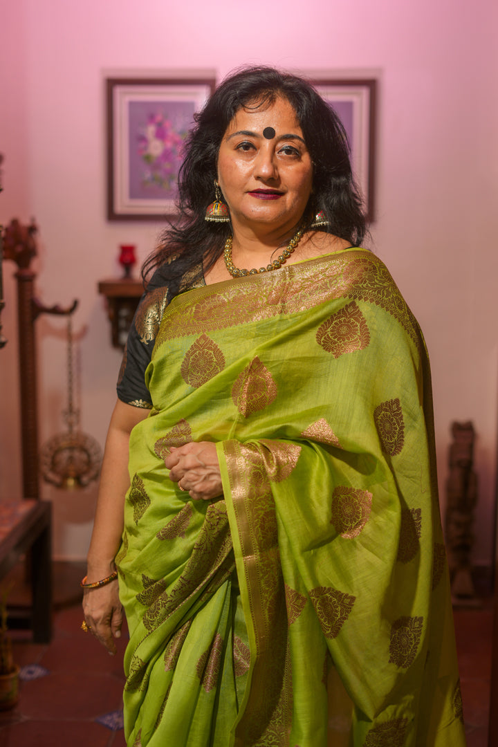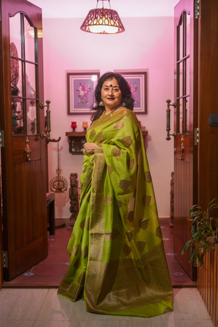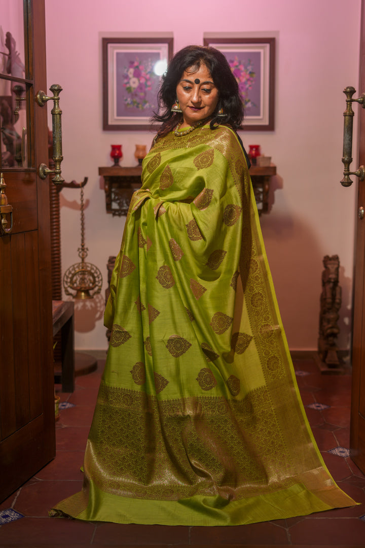 Light green cotton silk Saree