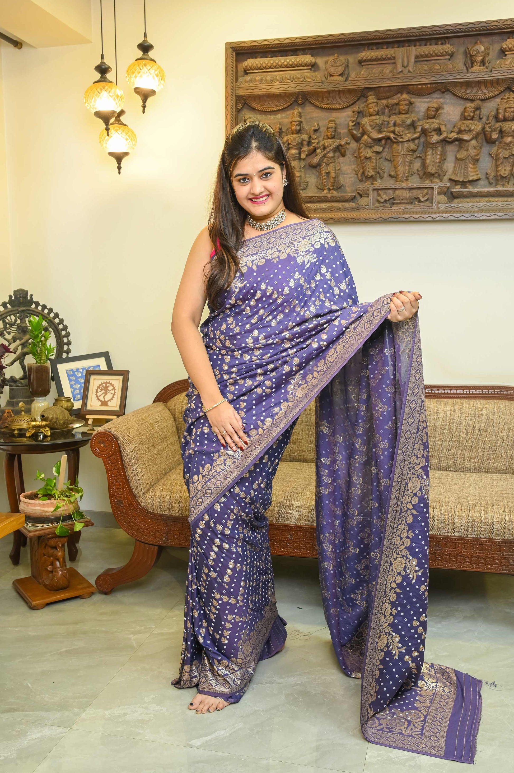 Purple Bandini Silk Banarasi Saree
