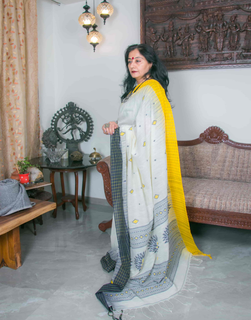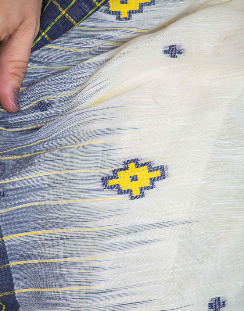 Soft cotton from northeast India purely handwoven in a combination of white and yellow and black checkered on the border