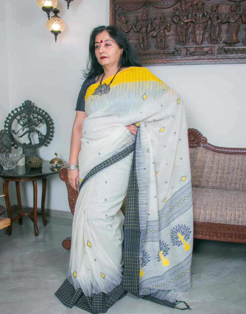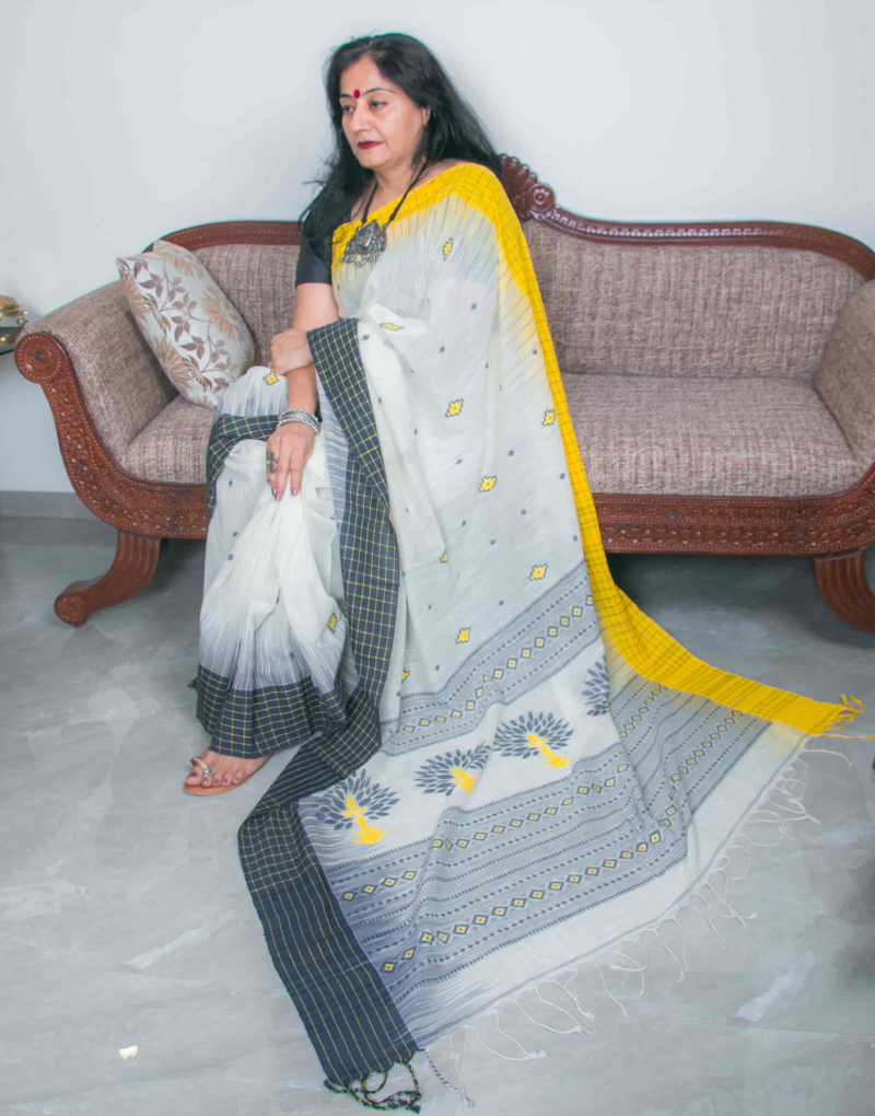 White & Yellow Soft Cotton Saree